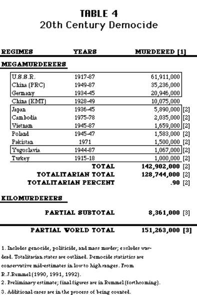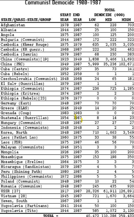 Collectivism of the Left is an invention of Karl Marx and Friedrich Engels. Marxism posits that there is an inevitable class conflict between all workers and their capitalist employers. Conflict between capitalists and workers will lead to a dictatorship of the proletariat. Mamdani claims to be a Democratic Socialist, but economic theory tells us that democratic socialism is unworkable and leads to tyranny. Does experience with Marxism confirm economic theory? Historian Rudy Rummel amassed data on the murders committed by communist states during the 20th century.
